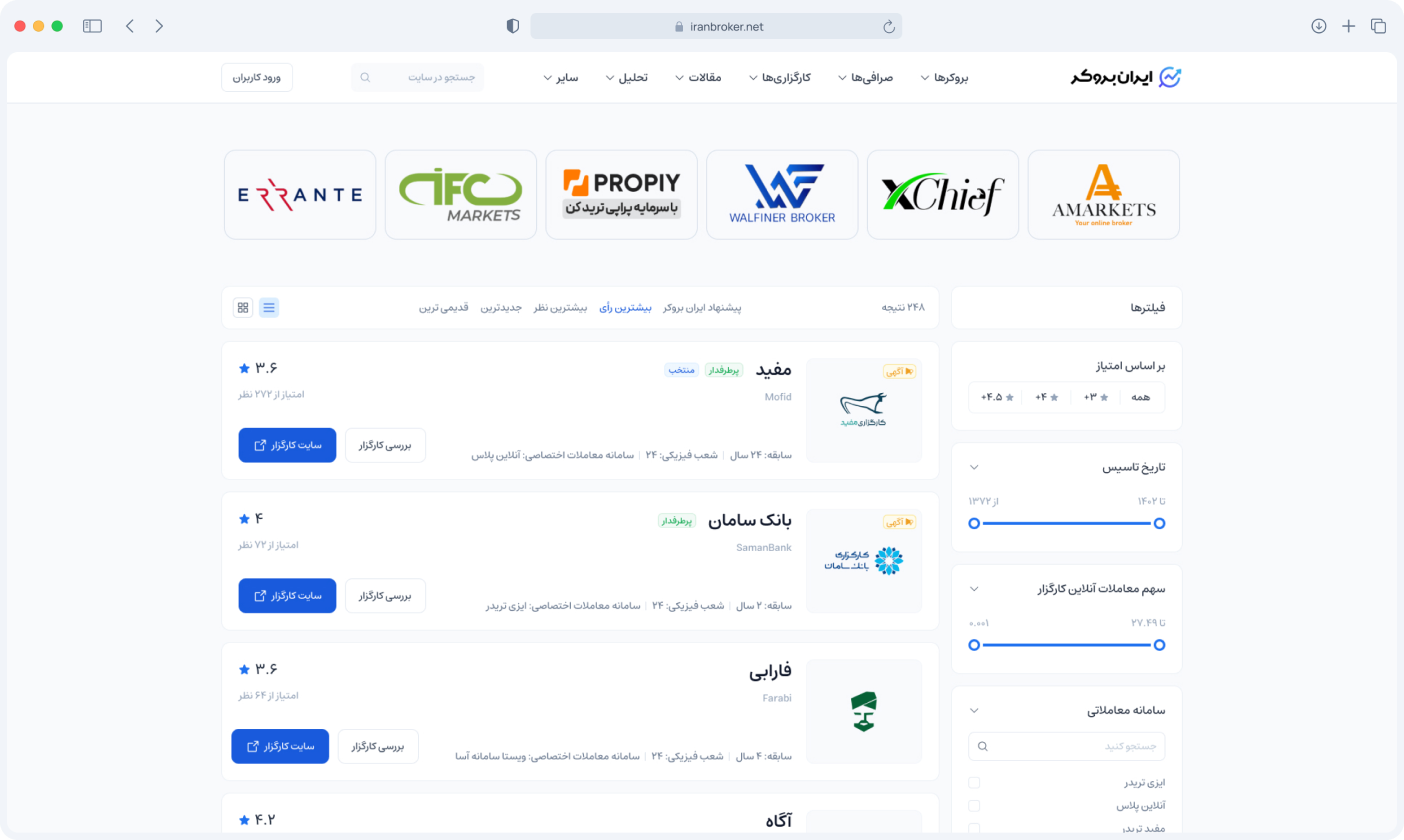 - با رتبه اعتباری ایرانبروکر، بروکرهای نامعتبر را فیلتر کنید.