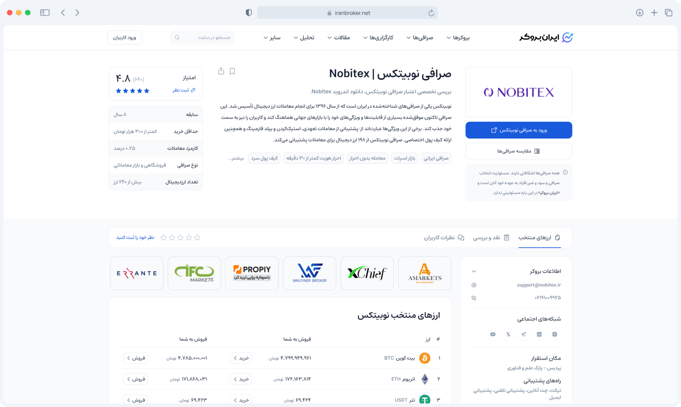 تیم ایران بروکر، با افتخار اعلام میکند که سایت این شرکت با نام تجاری ایران بروکر، به عنوان یکی از برترین پلتفرمهای بازارهای مالی در ایران، آماده خدمترسانی به شما عزیزان است. هدف ایرانبروکر ارائه خدمات حرفهای و مطمئن به معاملهگران ایرانی بازارهای مالی در همه زمینهها است. همچنین با تکیه بر تجربه و دانش تخصصی کارشناسان ما، ایرانبروکر در تلاش است تا علاوهبر کاربران، نیازهای کلیه فعالان این حوزه را با رویکردی متفاوت و مبتنی بر اصول اخلاقی، برآورده کند. سایت ایرانبروکر، به منظور راحتی و سهولت کاربران، با طراحی کاربر پسند و قابلیتهایی نظیر سرعت بالا، امنیت فوقالعاده، انعطافپذیری بالا و خدمات پشتیبانی تمام وقت در خدمت کاربران قرار گرفته است. از جمله خدمات ارائه شده توسط سایت ایران بروکر میتوان به اعتبارسنجی و بررسی بروکرهای فارکس و صرافیهای ارز دیجیتال، آنالیز اطلاعات کلیه پلتفرمهای مالی و سرمایهگذاری فعال، انتشار آخرین بروزرسانیهای منتشر شده، معرفی پلتفرمهای پرخطر و دارای ریسک به مشتریان، انتشار اخبار بازارهای مالی، ارائه اطلاعات مهم بازار به کاربران، قیمت ارزهای دیجیتال، ثبت گزارش تخلف مشتریان و پیگیری آنها و... اشاره کرد.