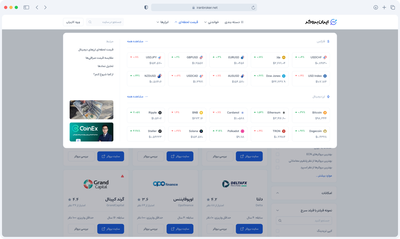 - پیگیری عوامل تأثیرگذار بر قیمت ارزهای دیجیتال و تحولات بازار فارکس با کمک مجله ایرانبروکر.