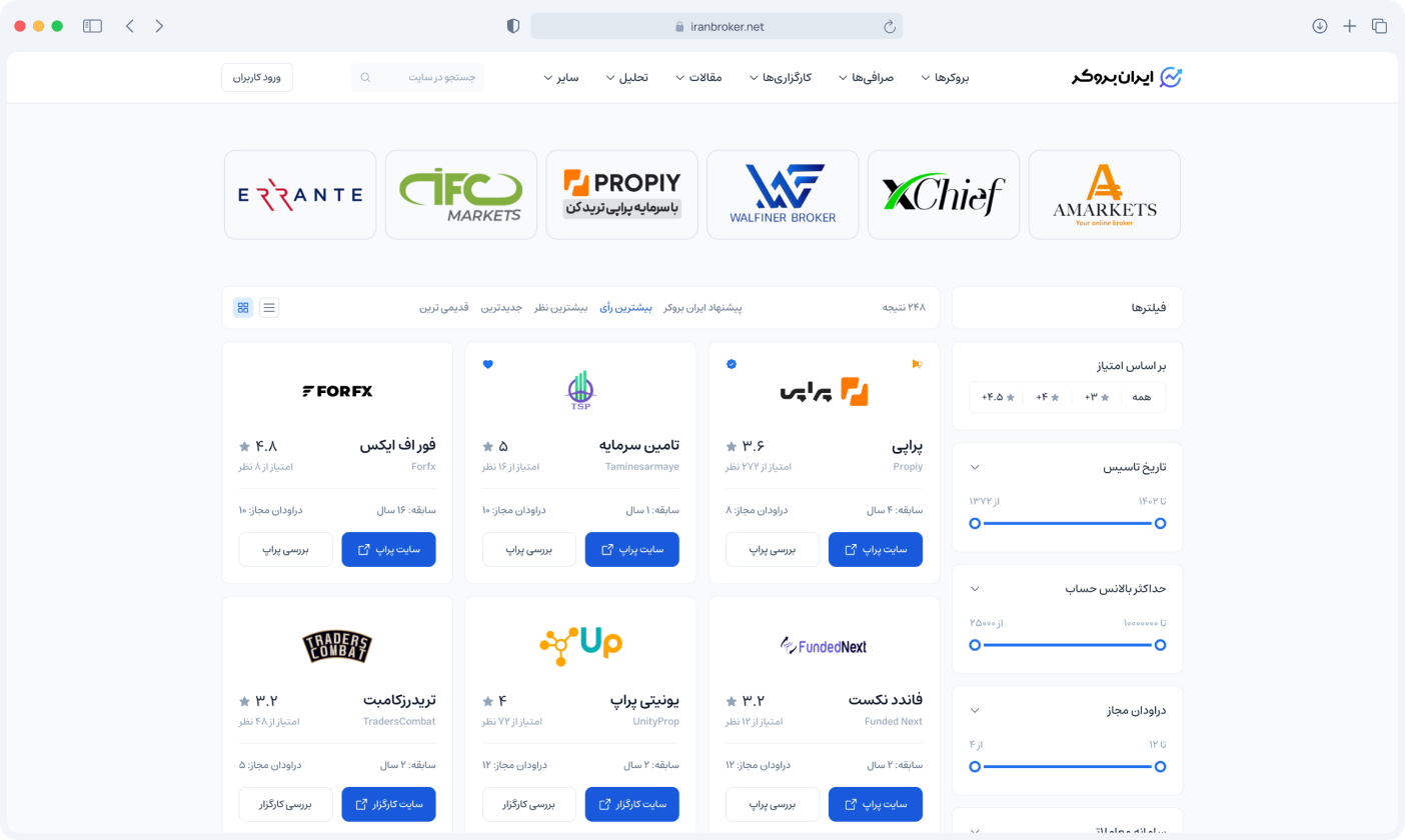 - تمامی پراپ فرمهای ایرانی و خارجی را بررسی و مقایسه کنید.