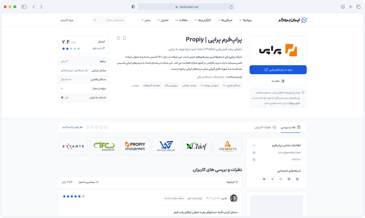 پراپ فرمها شرکتهای تأمین سرمایه هستند که به کاربران امکان میدهند با سرمایه آنها معامله کنند و معاملهگر ۷۰ الی ۹۰ درصد از سود معاملات را دریافت میکند؛ این تنها روی خوب پراپفرمها است. در چند سال اخیر کلاهبرداری در این حوزه بهصورت قارچی رشد کرده است و شرکتهای پراپ مختلفی از سراسر جهان و حتی داخل کشور اقدام به کلاهبرداری در این حوزه کردهاند. اما ایران بروکر همانند بررسی بروکرها و صرافیها متعهد شده است تا پراپفرمهای مختلف را بدون تعصب و تنها با ارائه مدارک و شواهد معتبر، زیر ذرهبین قرار دهد و شرکتهای پراپ معتبر و غیرمعتبر را برای کاربران بررسی کند.در گذشته، فقط پراپهای خارجی وجود داشتند که برخی از آنها به کاربران ایرانی نیز خدمات ارائه میدادند اما با اعمال تحریمهای بینالمللی، شرکتهای پراپ معتبری که به کاربر ایرانی خدمات ارائه دهد، روزبهروز کمتر شدند. از طرفی نیز به دلیل پیچیدهبودن دسترسی به شرکتهای خارجی، برخی از شرکتهای پراپفرم در داخل کشور تأسیس شدند تا خدمات تأمین سرمایه را به معاملهگران ارائه دهند. ایران بروکر در این زمینه نیز متعهد است تا با بررسیهای کارشناسانه و تخصصی، پراپهای ایرانی را تجزیه و تحلیل کند و خود کاربر با توجه به مطالعهای که در ایران بروکر انجام میدهد و مطالعه نظرات کاربران دیگر، تصمیم به انتخاب یک شرکت پراپ فرم کند.