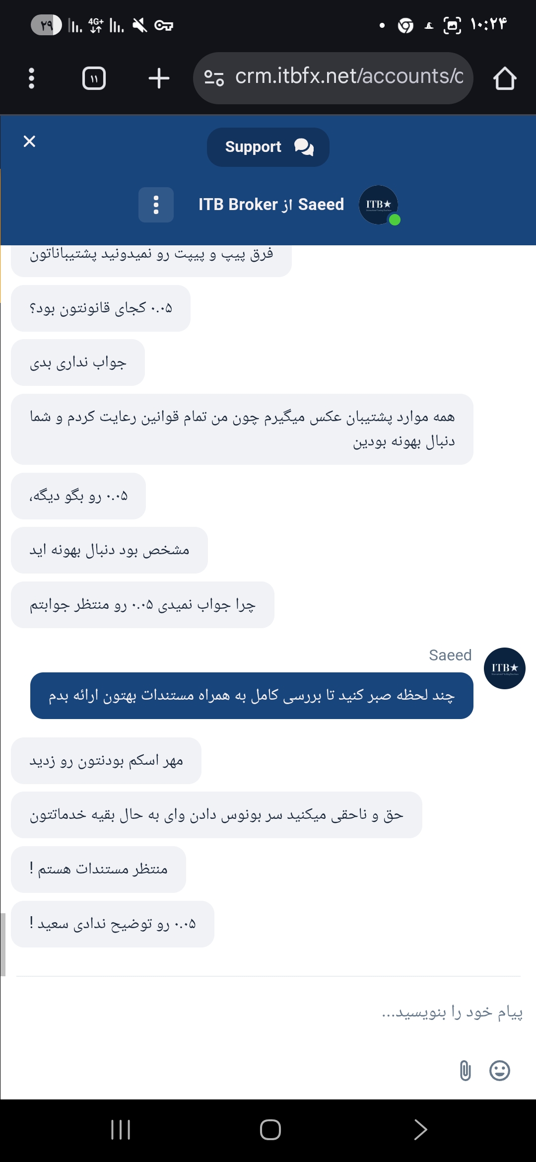 پشتیبانی بروکر آی تی بی اف ایکس