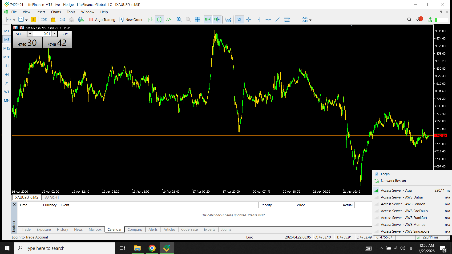 برای بررسی حساب سنت بروکر نیز در بروکر لایت فایننس حساب سنت باز کردیم و از طریق متاتریدر بروکر به بررسی اسپرد آن پرداختیم که در ادامه تصویر آن را مشاهده میکنید.