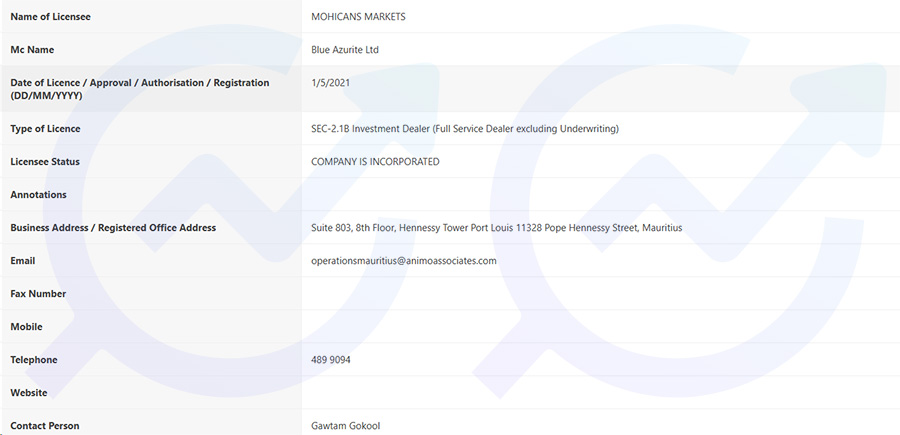 طبق اطلاعات بدست آمده، در حال حاضر این کارگزار فارکس فقط دارای مجوز ثبت از موریس است. این مجوز با نام MOHICANS MARKETS قابل استعلام است.