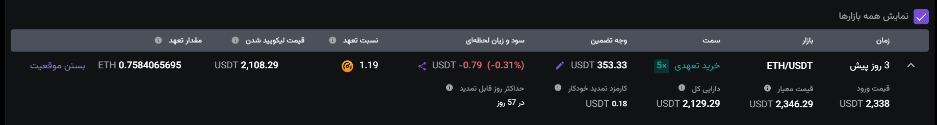 همچنین میتوانید در قسمت حد ضرر، معاملات تعهدی خود را با اعمال حد ضرر تنظیم کنید تا از زیانهای ناخواسته جلوگیری کنید.