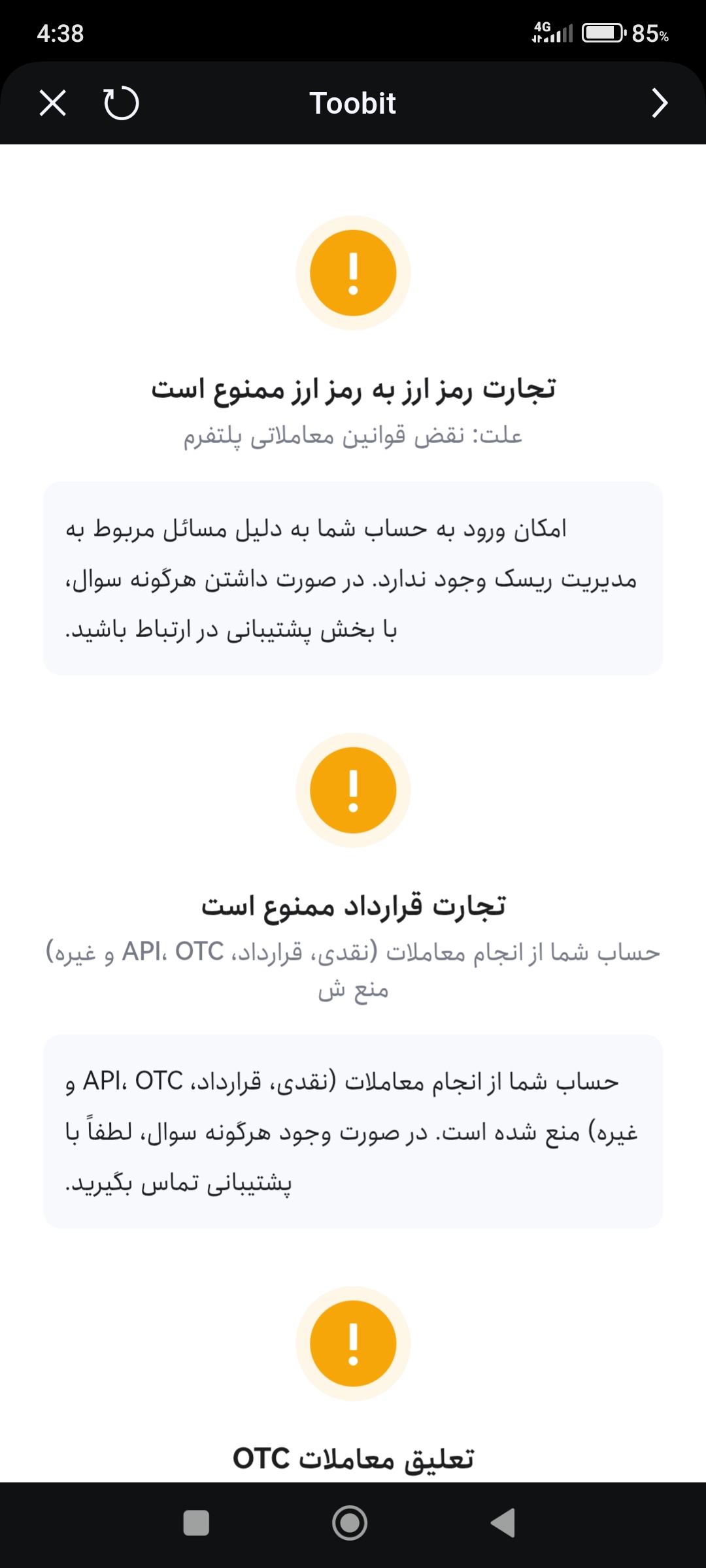 آی پی کشورهای فوق توسط صرافی توبیت مسدود شده است.