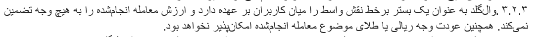 - مالکیت طلا متعلق به کاربر است و والگلد نمیتواند بدون اجازه کاربر از آن استفاده کند.