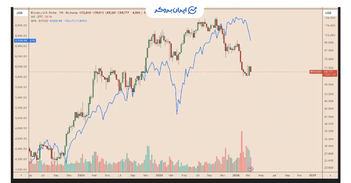 بیت کوین در روزهای اخیر بخش زیادی از رشد ناشی از تنشهای خاورمیانه را از دست داده و دوباره در مسیر نزولی داراییهای پرریسک، بهویژه سهام آمریکا، قرار گرفته است. این تغییر رفتار بازار باعث شده تحلیلگران نسبت به احتمال ادامه کاهش قیمت هشدار دهند.