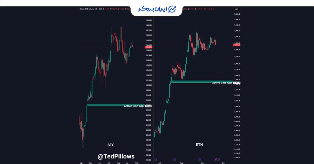 با وجود این شرایط، برخی تحلیلگران معتقدند این اصلاح کوتاهمدت میتواند مقدمهای برای آغاز یک رالی صعودی بزرگ در سهماهه چهارم باشد. بر اساس تحلیلها، بیت کوین دارای یک شکاف معاملاتی (CME Gap) در محدوده ۹۲,۰۰۰ تا ۹۴,۰۰۰ دلار است و احتمال پر شدن آن پیش از جهش بعدی وجود دارد. اتریوم نیز شکاف مشابهی در محدوده ۳,۴۰۰ تا ۳,۵۰۰ دلار دارد که میتواند مقصد اصلاح بازار پیش از حرکت صعودی آینده باشد.
