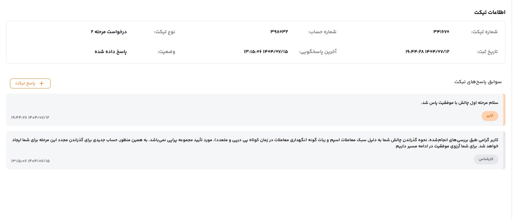 این درصورتی ه که تاریخچه معاملات من کاملا مشخص هست دوستان و انواع معاملات سویینگ یا اسکلپ انجام شده ... جالب ترین بخش قصه اینجاست که بعد از یک هفته بررسی و تیکت های بنده جواب داده اند که در پاورقی سایت نوشته شده که تمام خدمات پراپی بر بستر آموزش است و هیچگونه خدمات سرمایه گذاری خدمات مالی بروکر از سوی پراپی صورت نمیکیرد و مبالغ پرداخت شده بعنوان پاداش عملکرد ترید انجام می شود!!!!!