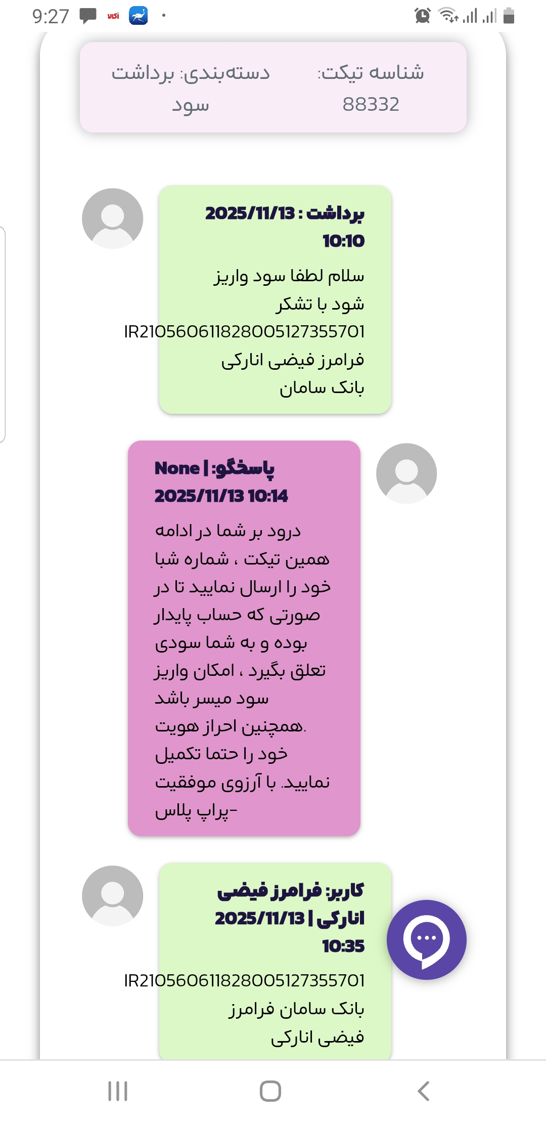درخواست برداشت از طریق تیکت در پنل کاربری ثبت میشود.