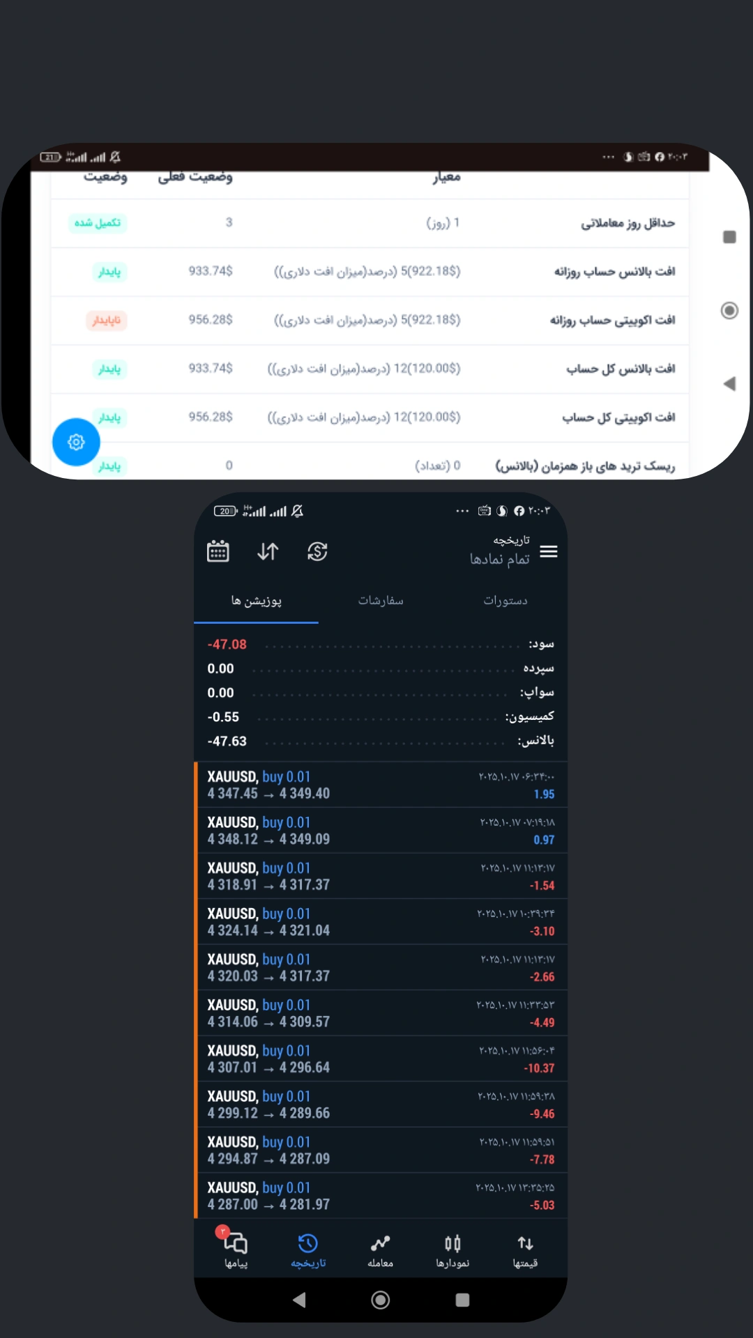 کپی ترید بین حسابهای شخصی خودتان در سرمایه گذار برتر مجاز است، اما کپی ترید بین حسابهای معاملهگران مختلف ممنوع میباشد.